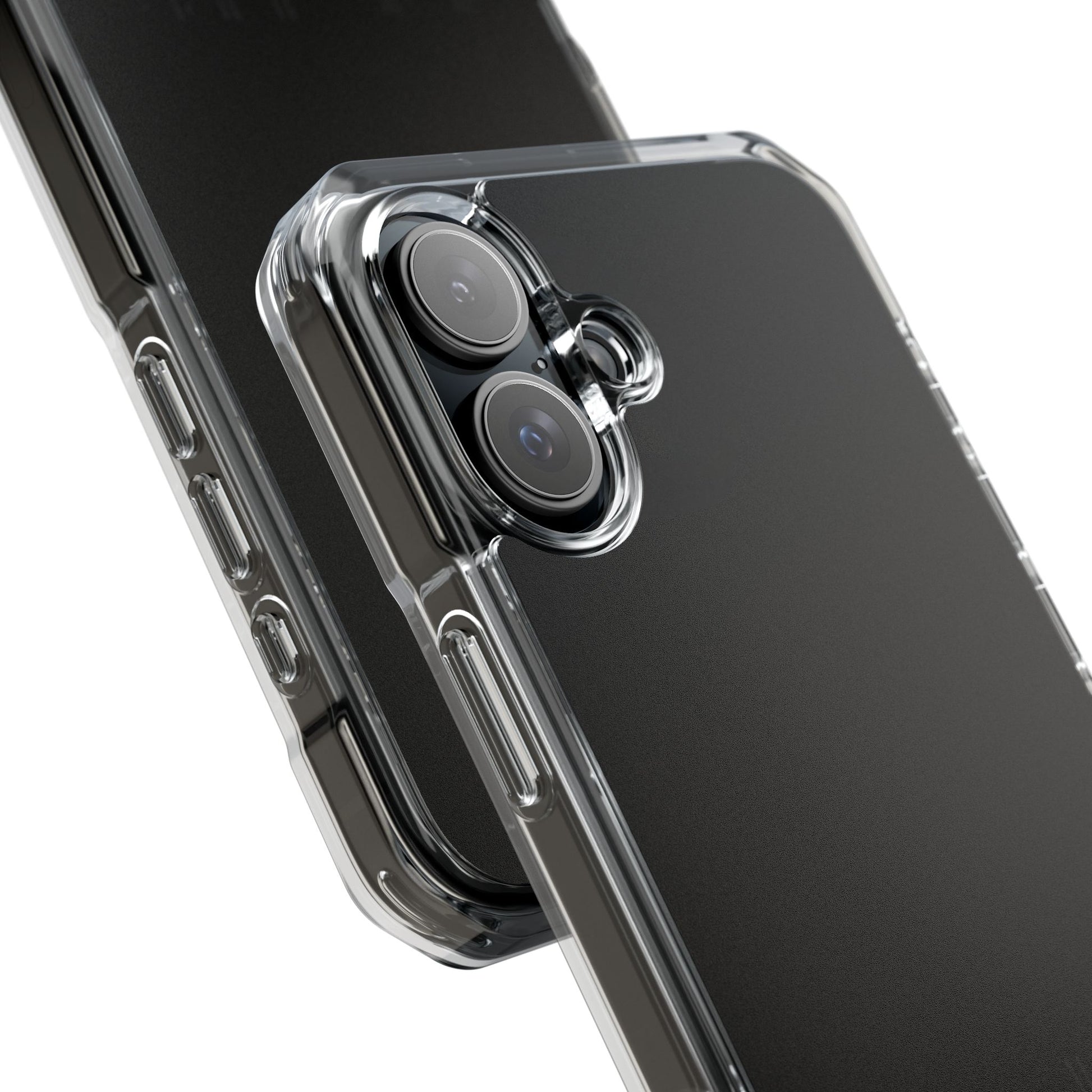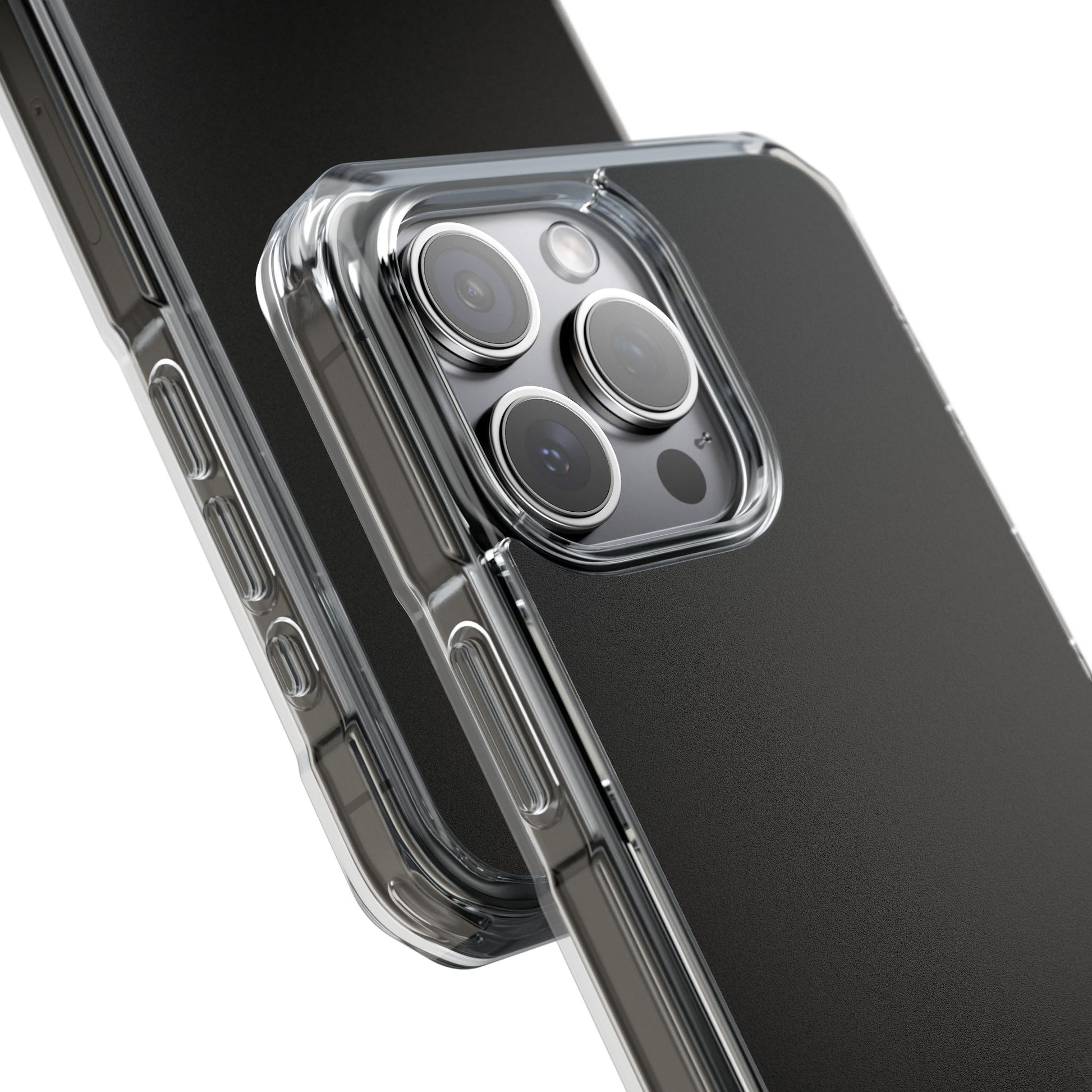 A slim, crystal-clear phone case that keeps your device visible while adding reliable protection and modern convenience. The transparent polycarbonate back showcases your phone’s original finish or artwork, while the soft TPU sides absorb shocks and cushion corners. Built-in MagSafe®-compatible magnets sit flush inside the case so wireless charging and magnetic accessories click on effortlessly. Crisp, vibrant printing options allow bold designs without hiding the phone beneath. Small cutouts let you attach straps or charms, and the textured bumper edges improve grip. This case feels light in hand, looks understated on the phone, and protects day-to-day — from coffee table slips to city streets — without calling attention to itself.