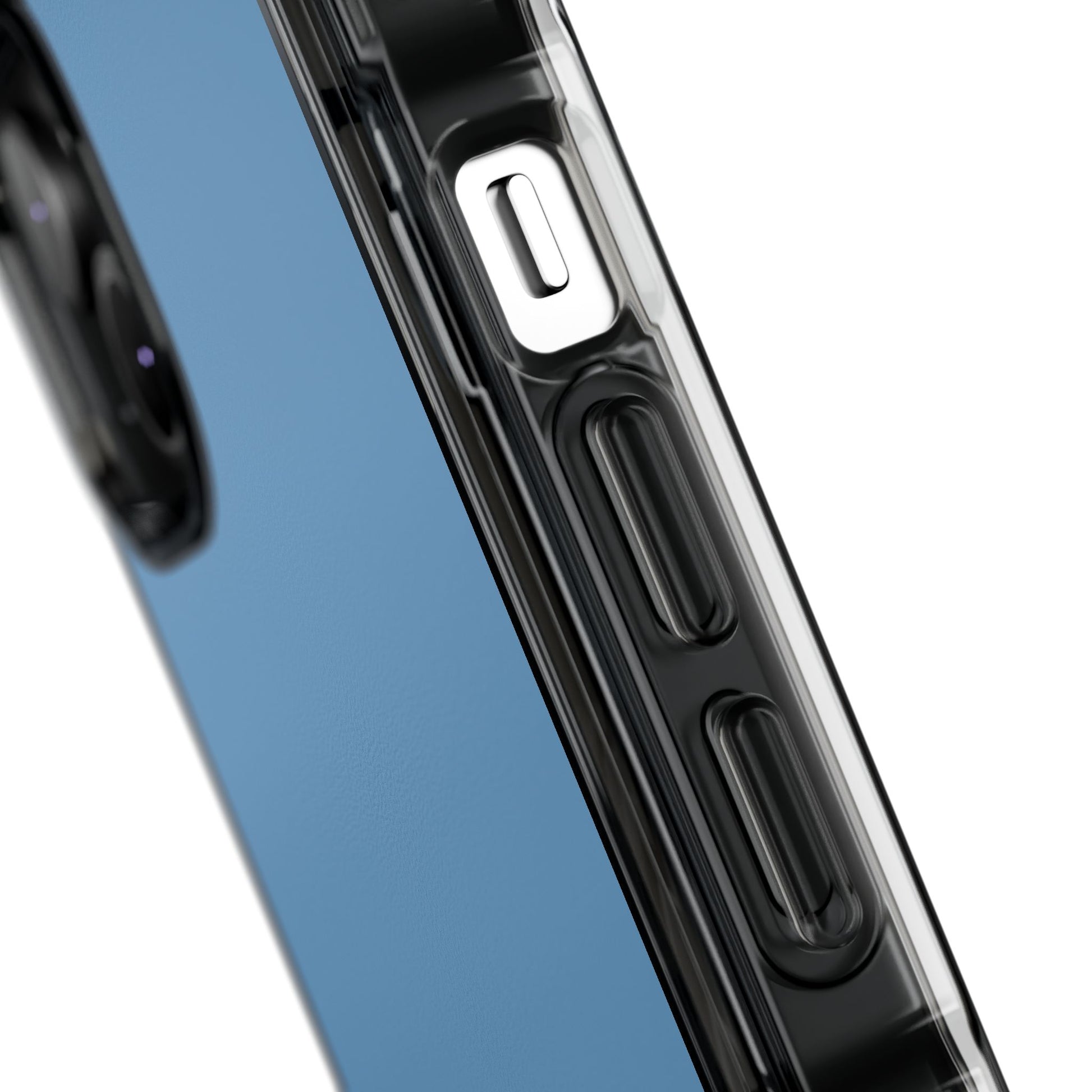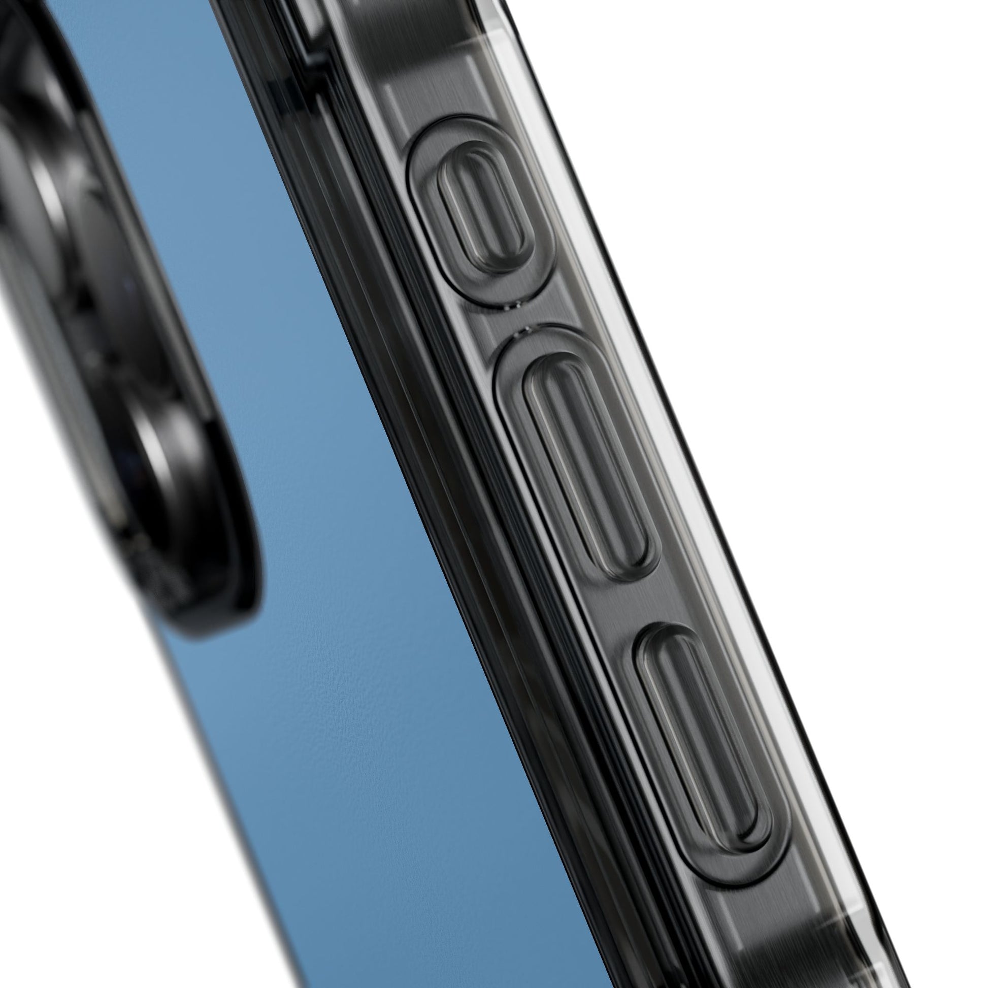 Clear magnetic impact case with a minimalist blue back and subtle script—designed to keep your phone visible while giving it smart protection. It feels light in the hand, with a smooth polycarbonate back that showcases the design and a flexible TPU bumper that absorbs shocks. Built-in MagSafe® magnets click with compatible chargers and accessories, while air-cushioned corners and precise cutouts protect edges and keep ports accessible. This case slides easily into a bag or pocket, and the clear sides let your phone’s original finish peek through, adding a discreet, contemporary touch to everyday life.