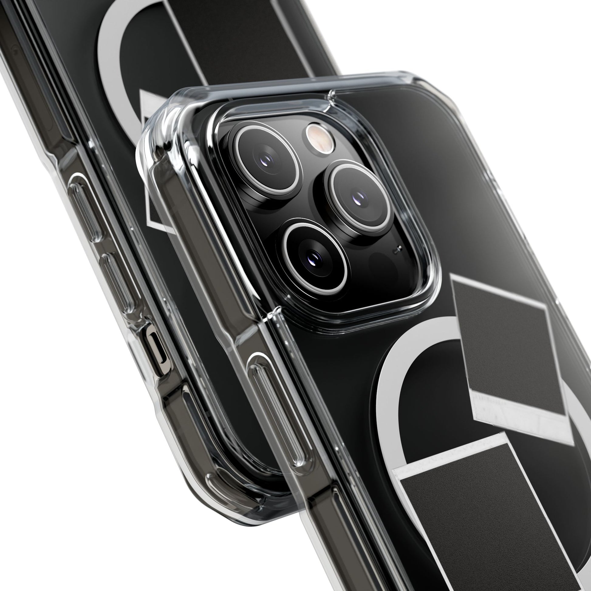 Clear, magnetic impact phone case that keeps your device visible while adding reliable protection and style. The transparent polycarbonate back showcases your phone and art while an embedded MagSafe®-compatible magnet ring lets you snap on chargers and accessories with confidence. TPU sides and air-cushioned bumper corners absorb shocks from daily drops. Crisp, vibrant printed accents stay bold against the clear shell, and a small strap/accessory hole gives extra carry options. Lightweight and subtle, this case blends function with a clean, modern look.